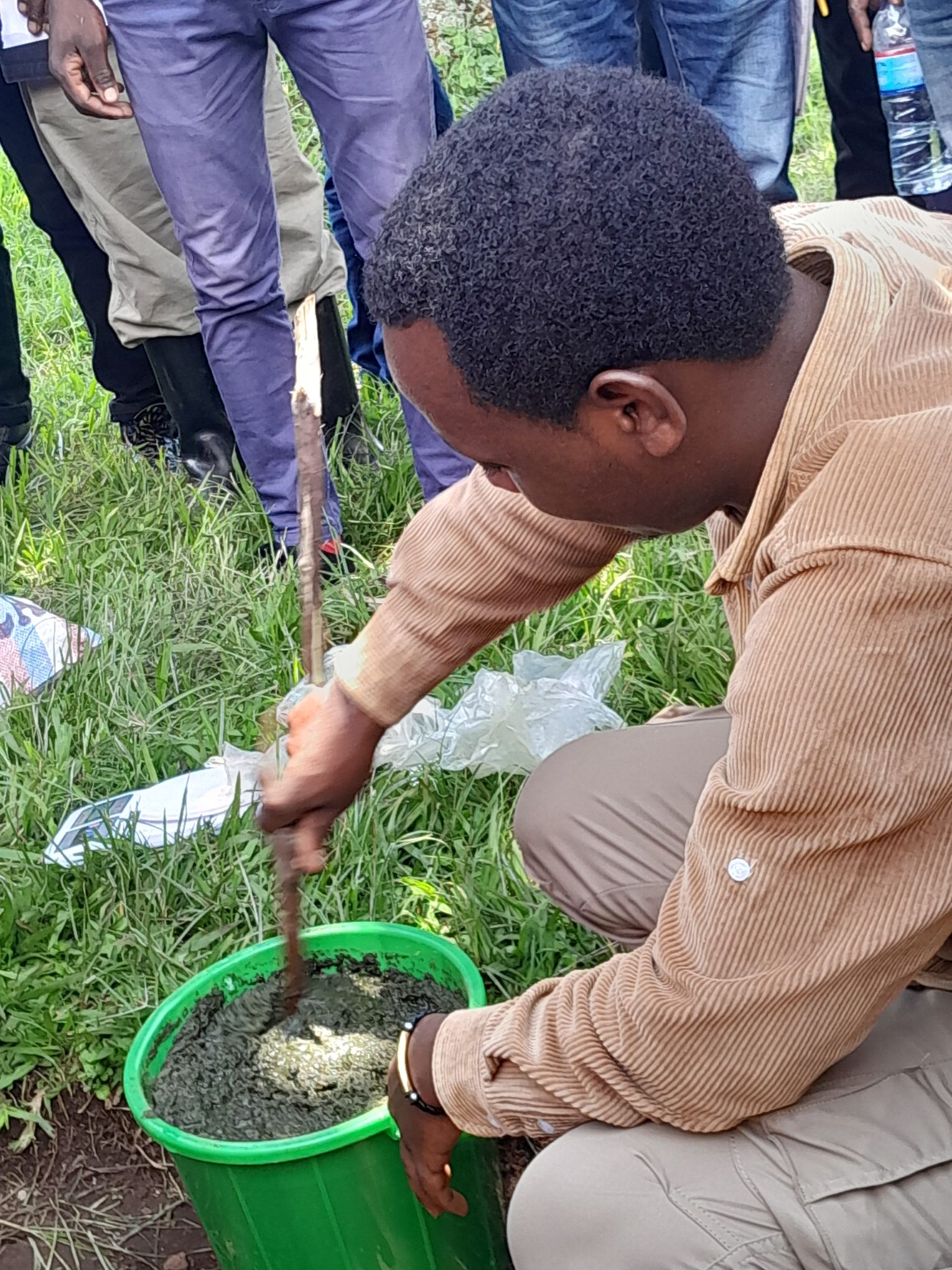 A key part of the training focused on addressing major pests and diseases affecting coffee in the Biega Living Lab, such as anthracnose, thrips, coffee rust, and the coffee bark beetle. Participants were guided step by step through the preparation of biopesticides using locally available plants—from identifying and collecting raw materials to drying, measuring, mixing, and maceration. Special attention was given to accessible plant species including Vernonia amygdalina, Tetradenia riparia, Tithonia diversifolia, Carica papaya, and Capsicum annuum.